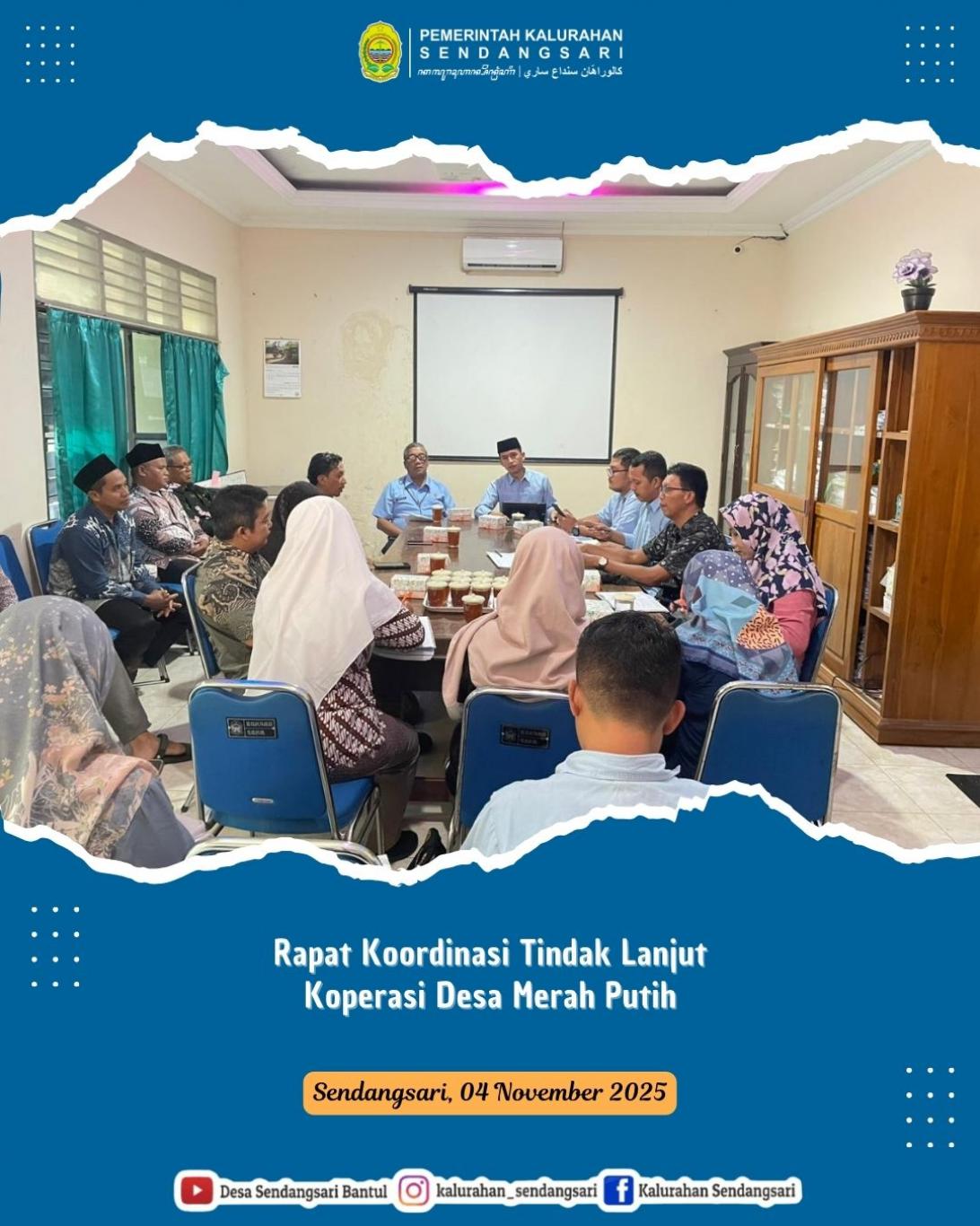 Rapat Koordinasi Tindak Lanjut Koperasi Desa Merah Putih dilaksanakan pada Selasa, 4 November 2025 bertempat di Aula H. Dalhar Kalurahan Sendangsari.