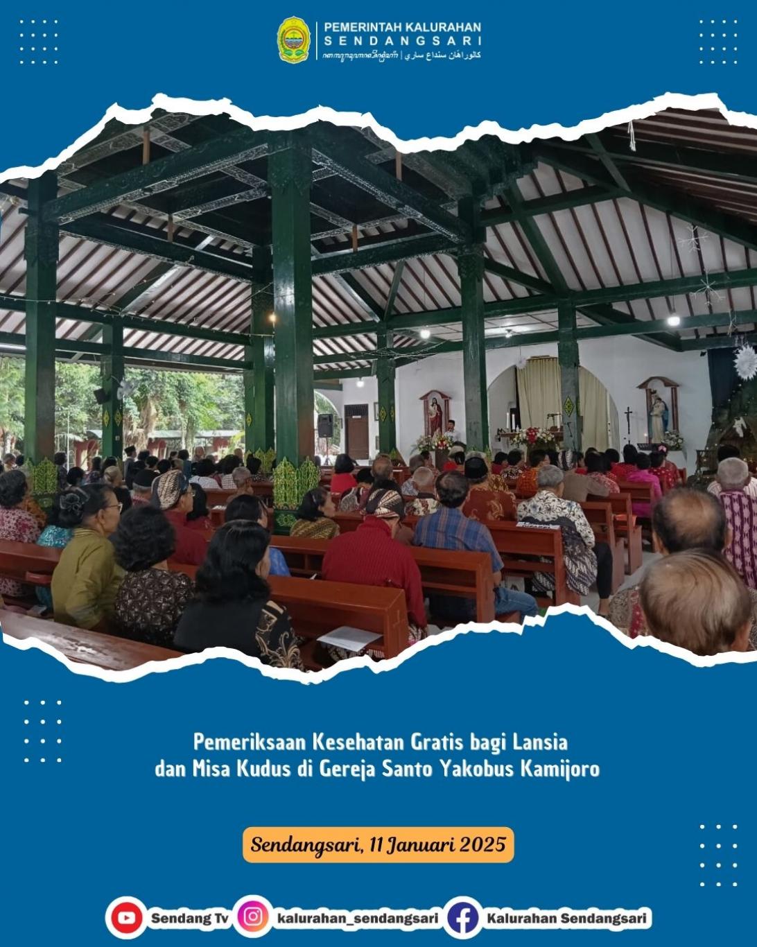 Lurah Sendangsari menghadiri kegiatan Pemeriksaan Kesehatan Gratis bagi Lansia yang dirangkaikan dengan Misa Kudus di Gereja Santo Yakobus Kamijoro pada Minggu (11/01/2026).