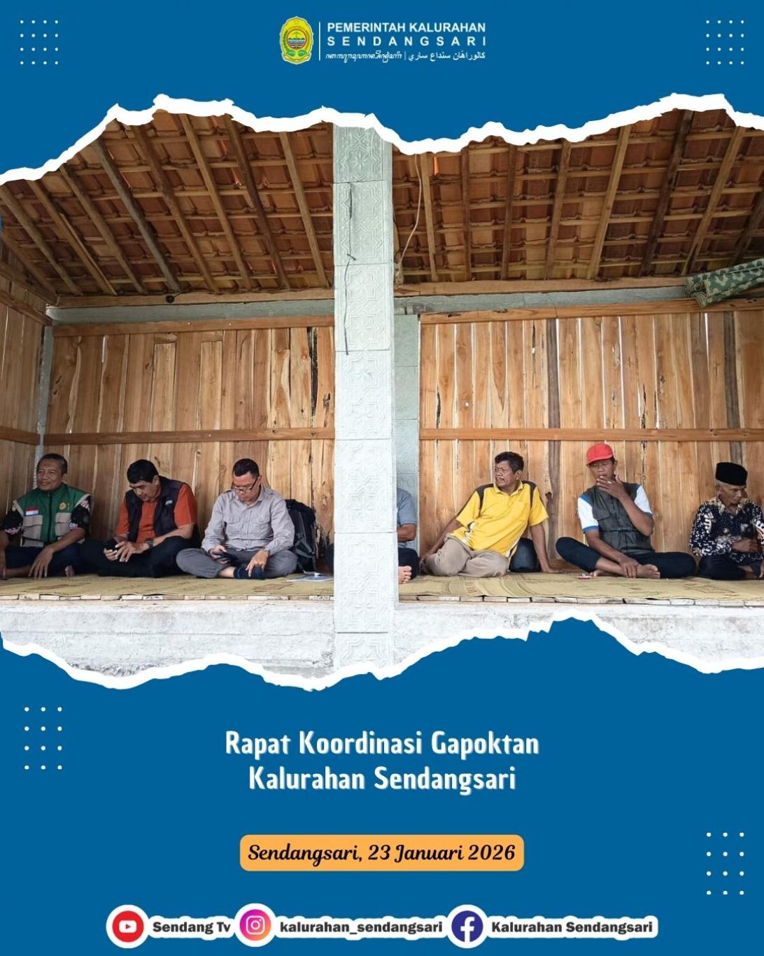 Pada Jumat, 23 Januari 2026, Gapoktan Sendangsari mengadakan rapat koordinasi bertempat di Bulak Jaten, Kalurahan Sendangsari. Kegiatan ini dihadiri oleh Ulu-ulu Sendangsari, BPP Pajangan, Jawatan Keamanan Kapanewon Pajangan, serta anggota Gapoktan Sendangsari.