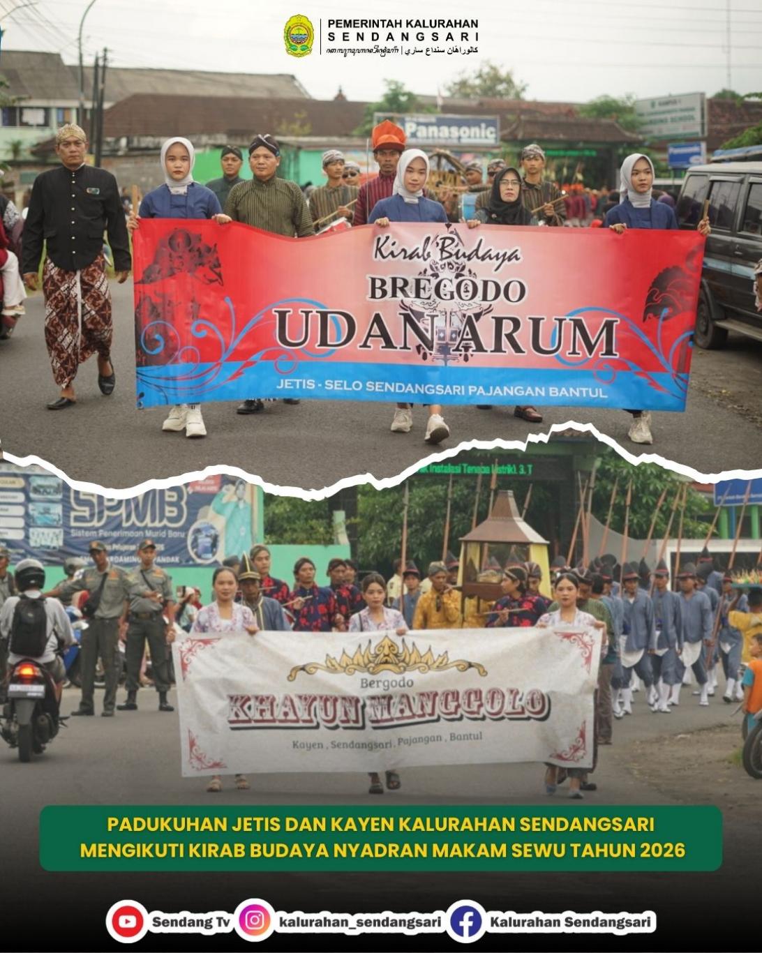 Padukuhan Jetis dan Padukuhan Kayen, Kalurahan Sendangsari, turut ambil bagian dalam Kirab Budaya Nyadran Makam Sewu yang dilaksanakan pada Senin, 9 Februari 2026. Kegiatan ini merupakan rangkaian tradisi budaya tahunan sebagai bentuk pelestarian adat dan nilai kearifan lokal masyarakat.
