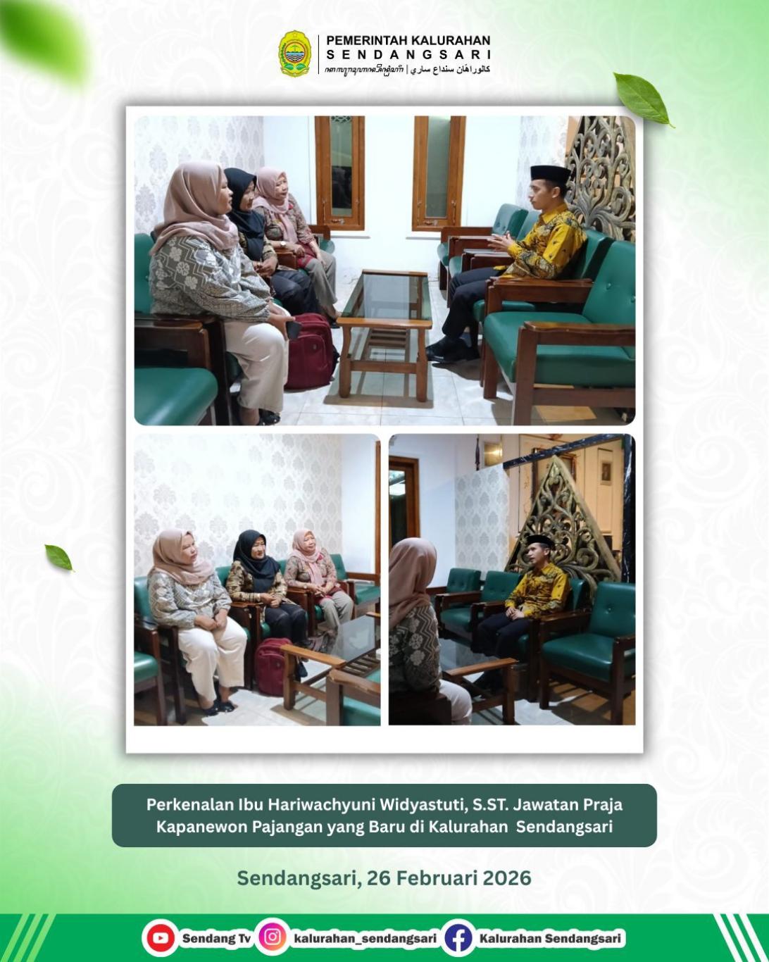 Kalurahan Sendangsari menerima kunjungan sekaligus perkenalan dari Jawatan Praja Kapanewon Pajangan yang baru, Ibu Hariwachyuni Widyastuti, S.ST., menggantikan kepala Jawatan Praja sebelumnya Ibu Arie Mujahadah, S.IP, pada Kamis (26/02/2026).