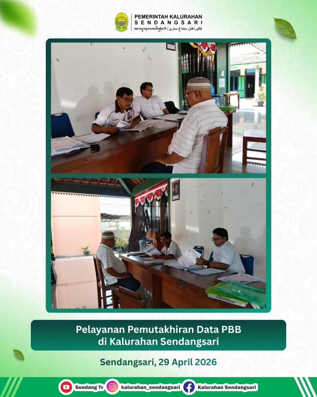 Pelayanan pemutakhiran data Pajak Bumi dan Bangunan (PBB) dilaksanakan di Kalurahan Sendangsari pada Rabu, 29 April 2026. Kegiatan ini bertujuan untuk memastikan data objek dan subjek pajak valid dan sesuai dengan kondisi terbaru di lapangan.